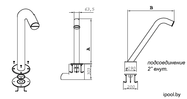 Конструкции фонтанов имеют подсоединение с резьбой 2"