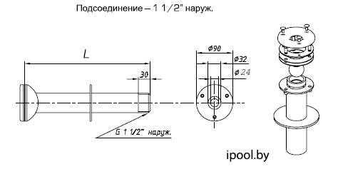 Имеет подсоединение с резьбой 1 1/2" наруж.
