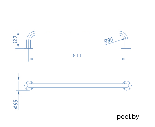 Монолитный фланцевый поручень, изготовленный из полированной нержавеющей стали марки AISI-304, обеспечивающей превосходную сопротивляемость коррозии и позволяющей поручню долгое время оставаться в первозданном виде.