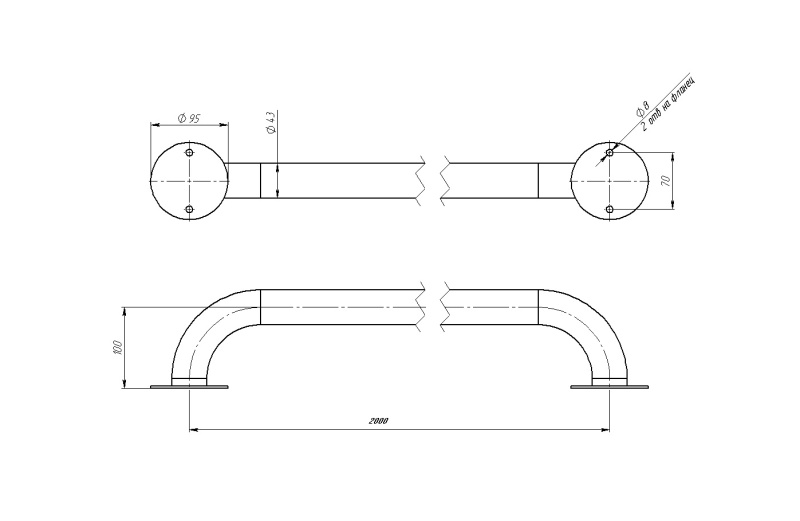 Поручни комплектуются крепежом и прокладками. Диаметр 43 мм