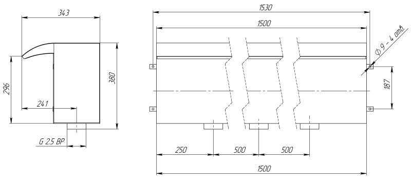 Данный вид водопада  «Стеновой» монтируются в стену прилегающую к бассейну, создавая так называемый «водный занавес».