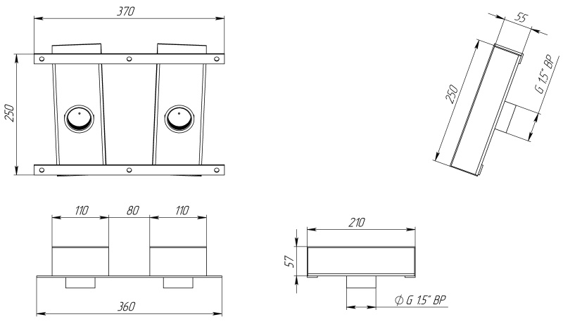 Сиденье аэромассажное двухполосное из нержавеющей стали AISI 304 для бассейнов, облицованных плиткой или мозаикой.