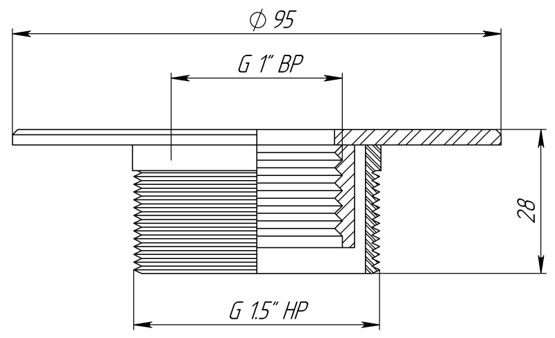 Применяется для установки различных закладных элементов в бассейнах, облицованных плиткой. Присоединение - наружная резьба 1,5".