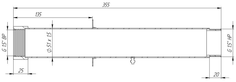 Стеновой проход 1,5" 350 мм под плитку, AC