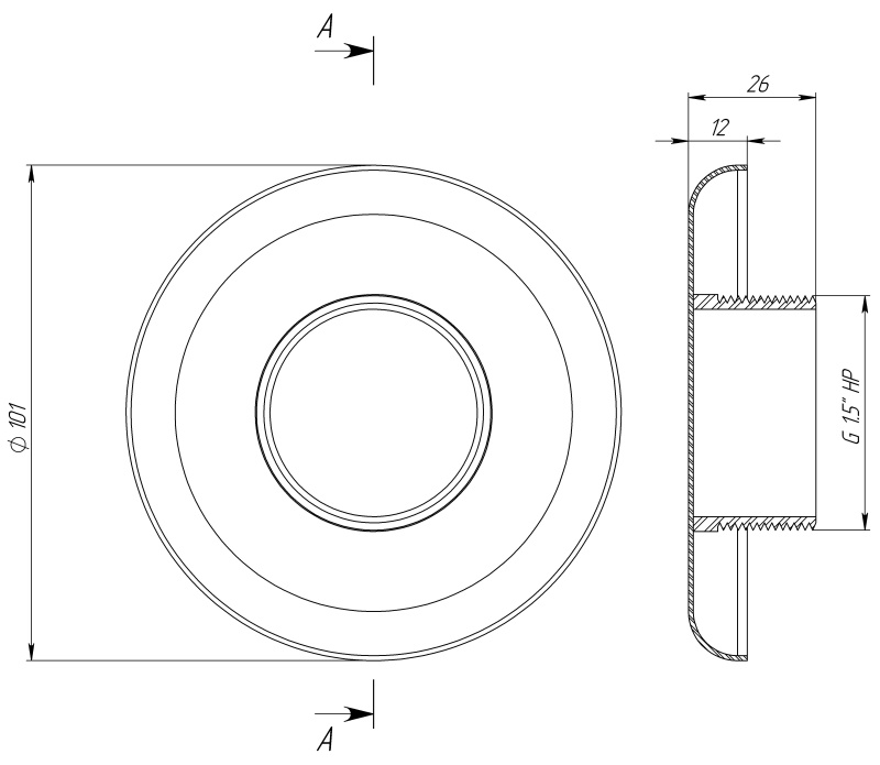 Заглушка корпусной втулки водного пылесоса, изготовленная из высококачественной нержавеющей стали. Присоединение — резьба 1,5".