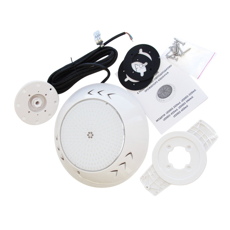 LED прожектор для бассейнов AquaViva на 546 светодиодов. Обеспечивает превосходное освещение бассейнов, фонтанов и SPA. Прожектор легко устанавливается и обслуживается. Соответствует стандарту водозащиты IP68.