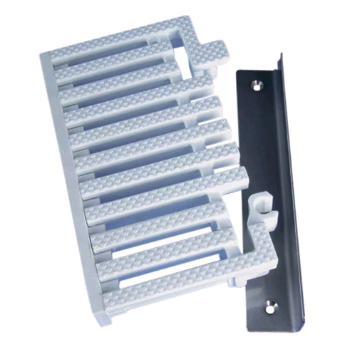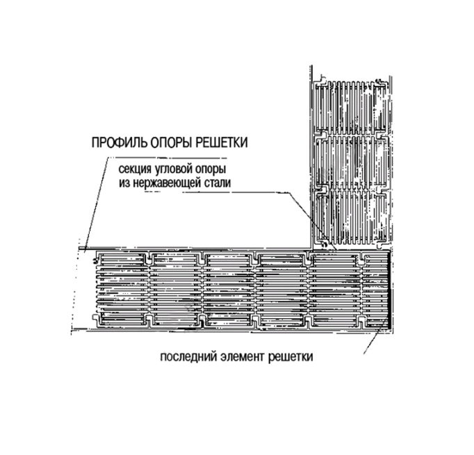 Уголок из AISI-304, пластиковая часть из полипропилена. Предназначен для адаптации к последнему элементу решетки. Возможно потребуется обрезка.