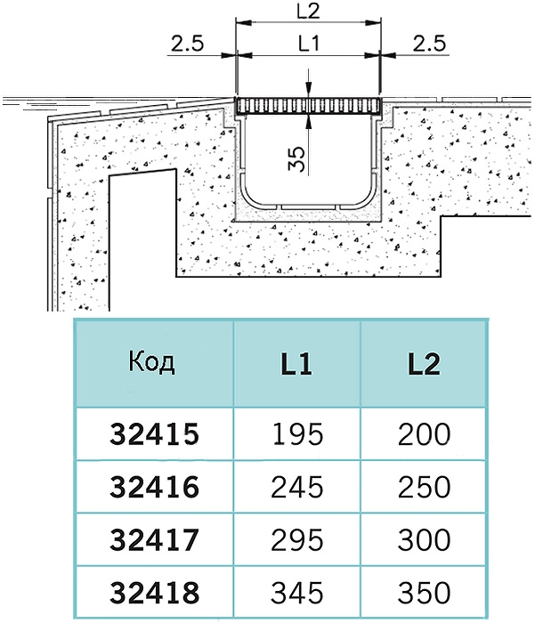 Продольная переливная решетка из нержавеющей стали. Канал должен быть на 5 мм шире, чем решетка для обеспечения легкой сборки. Выполнена из прямых секций из нержавеющей стали AISI-304, 500 мм в длину. Прямые секции могут быть изготовлены по индивидуальным размерам в зависимости от длины плавательного бассейна. Метал с нескользящей поверхностью. 4 модели с разными размерами в зависимости от ширины используемой решетки.
