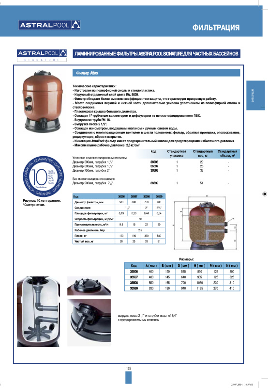 Фильтровальная емкость Atlas 750mm, с многопозиц.вентилем