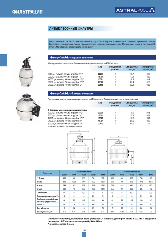 Фильтровальная емкость Cantabric 600 mm, с верхним вентилем