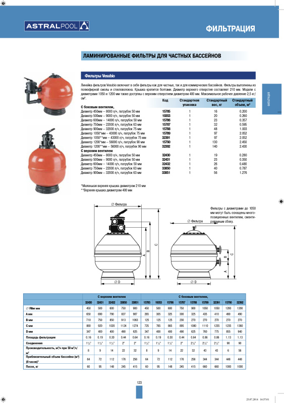 Линейка фильтров Vesubio включает в себя фильтры как для частных, так и для коммерческих бассейнов. Фильтры выполнены из