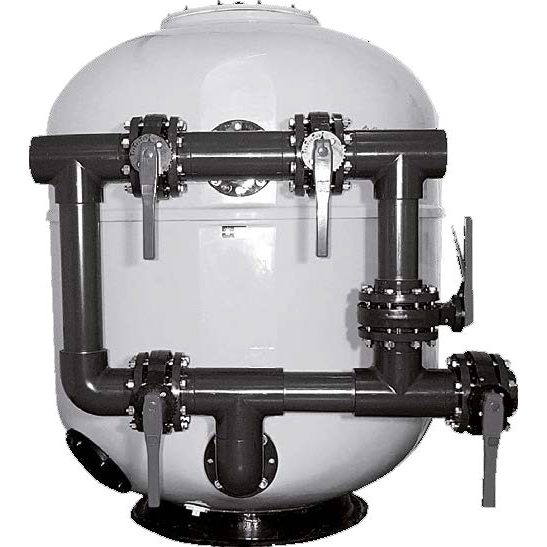 Фильтр dinotec Comfort XL 1250 с ёмкостью из высококачественного, усиленного стекловолокном полиэстера и дюзовым дном для бассейна объемом 325 м. куб., вкл. ручной воздушный клапан, устройство опорожнения ёмкости, внутреннюю обвязку из устойчивого к коррозии пластика.