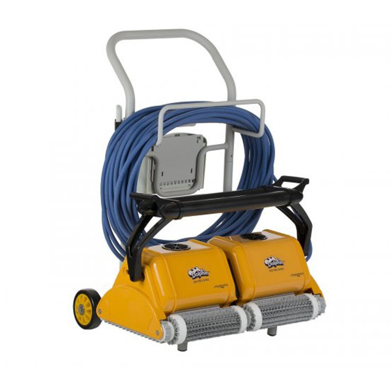 Для бассейнов длиной до 33 метров облицованных керамической плиткой, стеклянной и керамической мозаикой любого размера, бассейнов из нержавеющей стали, композитных бассейнов, а также для бассейнов облицованных пленкой ПВХ. Чистит дно, придонную линию, стены, ватер линию. Цикл работы 4/6/8 часов. Длина кабеля 40 м. Свивель. Гарантия 24 месяца. Возможность программирования с пульта ДУ: Отсрочка / Цикл / Программы чистки / Ручное управление. Индикатор заполнения фильтра на блоке питания. Комплектация: робот, фильтры, блок питания, пульт ДУ, тележка для хранения и транспортировки.