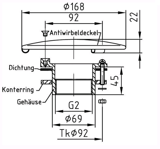 Донный слив AllFit (Hugo Lahme) с штифтами и контрфланцем, ВР 2", прямой выход и антивихревая крышка диаметром 168 мм.