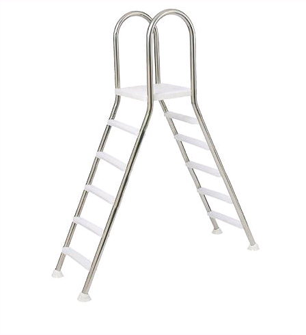 Лестница двухсторонняя 5+5 ст. ESC PN двусторонняя с поручнями из нержавеющей стали марки AISI-304. Платформа и ступени из пластика. Пять ступенек с одной стороны и пять с другой. Лестница устанавливается над бортиком. Изделие предназначено для бассейнов установленных на поверхности. Одна часть лестницы опирается на дно бассейна, другая на поверхность возле бортика. Ступени и платформа крепятся к поручням болтами из нержавеющей стали.