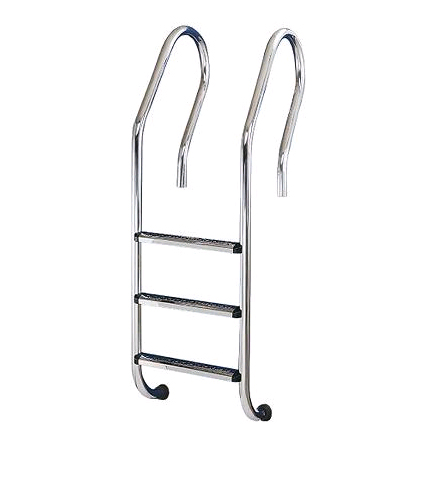 Лестница 3 ступени (у.б.) PARALLEL. Три ступеньки с противоскользящими пластиковыми накладками. Крепежные элементы - пластиковые стаканы. Лестница предназначена для полностью заглубленных бассейнов с узким бортом. Верхняя часть поручней опускается в стаканы. Нижняя часть лестницы упирается в стену бассейна. Ступени крепятся к поручням с помощью болтов.