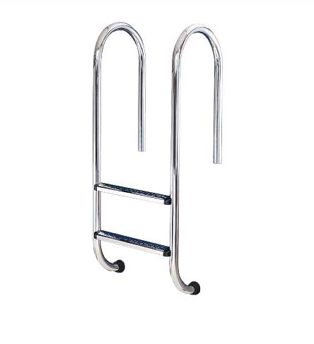 Лестница 2 ступени (у.б.) Flexinox WALL AISI-316. Две ступеньки с противоскользящими пластиковыми накладками. Крепежные элементы - пластиковые стаканы. Лестница предназначена для полностью заглубленных бассейнов с узким бортом. Верхняя часть поручней опускается в стаканы. Нижняя часть упирается в стену бассейна. Ступени крепятся к поручням с помощью болтов.