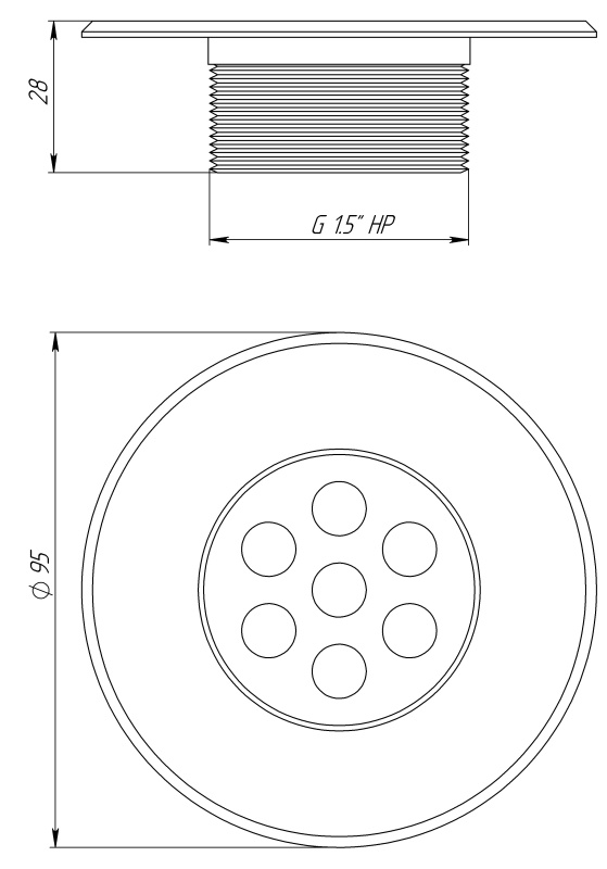 Присоединение - наружная резьба 1,5". Устанавливается в дно бассейна. Есть возможность установки в стеновые проходы АС 13.090, АС 13.100, АС 13.091, АС 13.101.