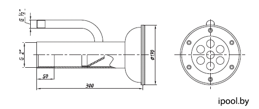 Форсунка гидромассажная 20-25 м3/час, АТ int 2", пленка