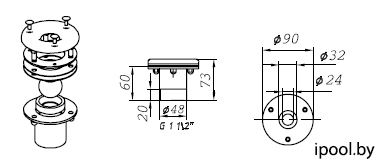 Гидромассажная форсунка устанавливается в стену бассейна (часто называется стеновой форсункой возврата воды).