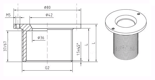 Форсунка подающая, направленная AllFit (Hugo Lahme), НР 2", длина 70 мм, для бетонных бассейнов, материал пушечная бронза, накладка нерж.сталь