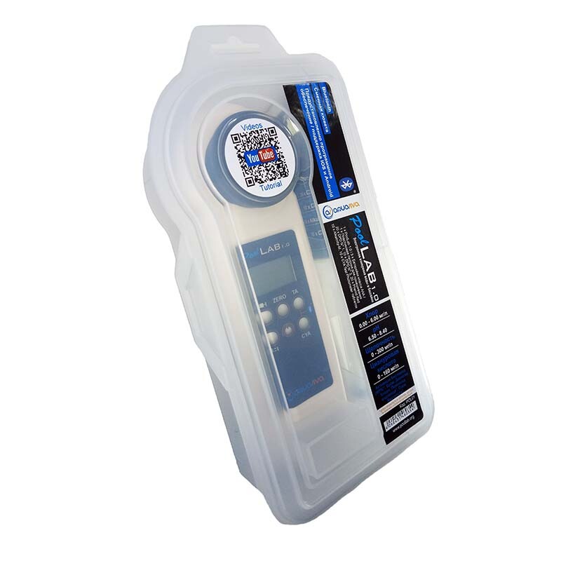 Тестер фотометр PoolLab 1.0 POL01-AQPRU для профессионального анализа воды бассейнов и SPA. Возможность измерения уровня хлора (свободный, связный, общий), рН, щелочность, жесткость и кислотность воды, определение содержания активного кислорода, брома, озона, диоксида хлора, перекиси водорода и других показателей. Наличие Bluetooth для синхронизации результатов теста и получения рекомендаций по дозированию на основе индивидуально введенных продуктов по уходу за водой. Расчет индекса LSI также предлагается через программное обеспечение и приложение. Рекомендуем производить наполнение кюветы, используя шприц объемом 10 мл, который идет в комплекте Высочайшая точность.Измерение основных показателей воды.