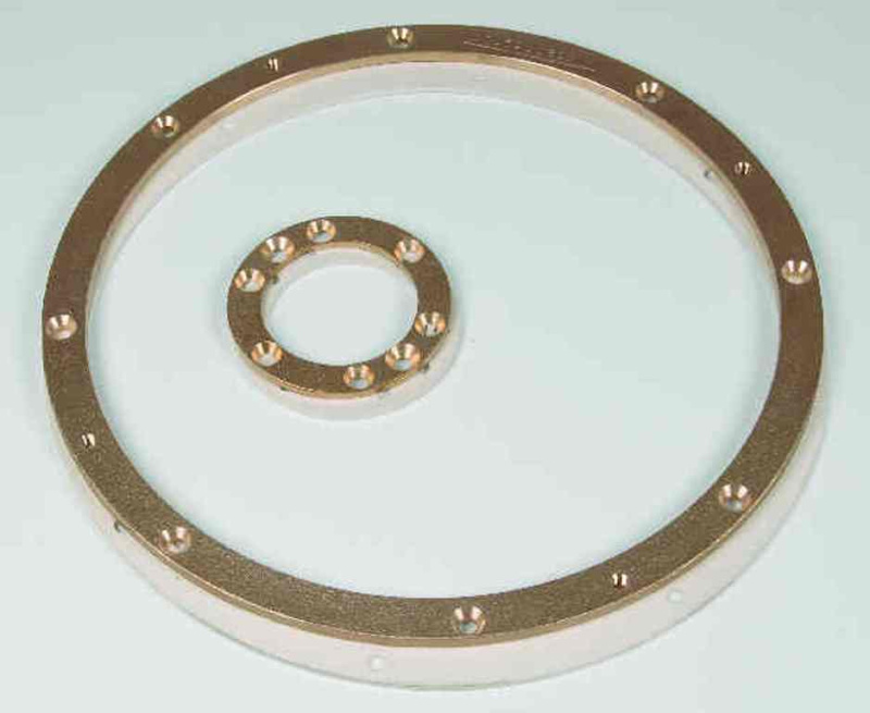 Набор из двух фланцев для круглого подводного гейзера и пневмокнопки. Выполнены из бронзы.