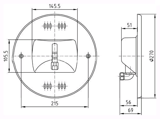 Прожектор галогеновый VitaLight (Hugo Lahme) 200 Вт, 30В DC, диаметр 270 мм, V4A, 2,5 м кабель 2x2,5 мм2, BZ