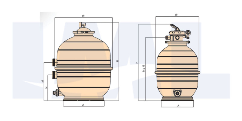 Фильтровальная емкость Mediterraneo D600,14м3/ч,с бок.подключ.
