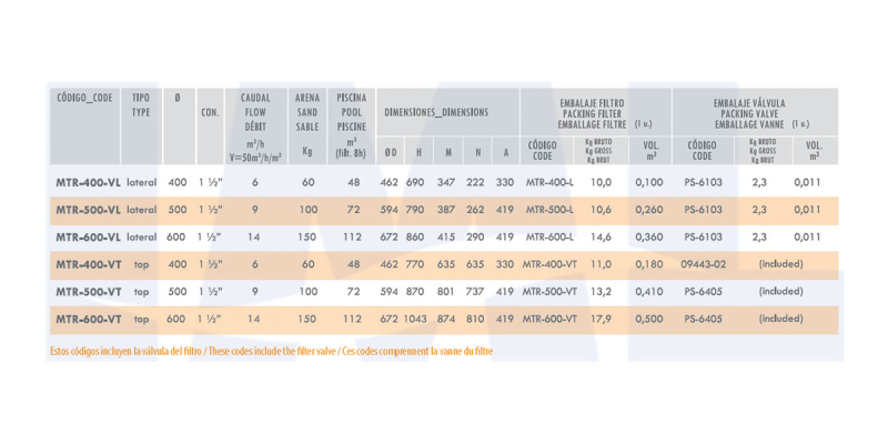 Фильтр MEDITERRANEO Д600 MTR-600-L+вентиль PS-6103 - предназначен для механической очистки воды в бассейнах объемом до 112 м3. Производительность фильтра 14 куб.м/ч при скорости фильтрации 50 куб.м/ч/кв.м. Подсоединение вентиля – боковое. Диаметр фильтра 600 мм. Предназначен для очистки воды в бассейнах от механических взвесей объёмом до 112 м3. Корпус фильтра изготовлен из двух полипропиленовых чаш, сваренных ультразвуковой сваркой. В верхней части бочки установлена инспекционная прозрачная крышка (фиксируется хомутом) с ручным воздухоотводчиком, в нижней части - сливная пробка. Коллектор, диффузор с сепараторами изготовлены из материала UPVC. В качестве фильтрующего элемента применяется кварцевый песок и гравий. Комплектуется манометром, вентилем PS-6103 (в комплект не входит).
