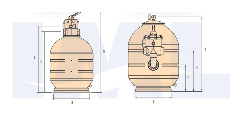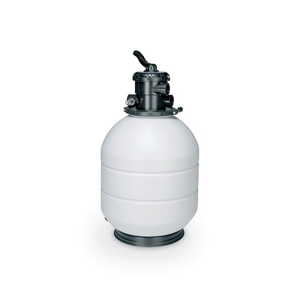 Фильтр ROMA Д400 с верхним вентилем MEC-400-VT предназначен для механической очистки воды в бассейнах объемом до 40 м3. Производительность фильтра 6 куб.м/ч при скорости фильтрации 50 куб.м/ч/кв.м. Подсоединение вентиля – верхнее. Диаметр фильтра 400 мм. Предназначен для очистки воды от взвесей в бассейнах объёмом 200 м3. Корпус фильтра изготовлен выдуваемого из цельного куска полиэтилена высокой плотности (PE-HD), в верхней части бочки установлен вентиль PS-6405 (крепится хомутом) и клапан воздухоотвода, в нижней части - сливная пробка. Коллектор, диффузор с сепараторами изготовлены из материала PVC. В качестве фильтрующего элемента применяется кварцевый песок. Комплектность: манометр, платформа для установки циркуляционного насоса, вентиль, соединительный шланг с хомутам для соединения насоса с вентилем.