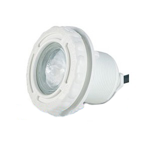 Светильник "MINI" подводный 50Вт без закладной B-033-PL - предназначен для подводного освещения небольших объёмов воды. Мощность - 50 Вт, напряжение - 12 В. Галогенная лампа 50 Вт/12 В с алюминизированным отражателем; угол освещения 38°, световой луч 95 люкс на 4 метр. Корпус прожектора изготовлен из белого пластика стойкого к УФ излучению. На лицевую часть может устанавливаться накладка из нержавеющей стали.
