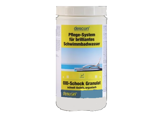Descon Oxi-Schock - гранулированное комбинированное средство для быстрой обработки воды в плавательных бассейнах и цветущей воды. Обладает высокими оксидирующими свойствами. За счет быстрого распада не вызывает повышенного содержания хлора.