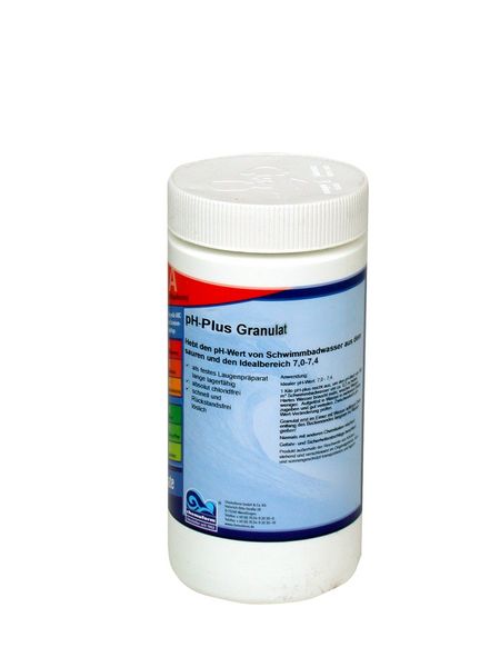 pH-Plus следует засыпать в скиммер или растворить и залить в бассейн. Дозировать порциями. Контролировать значение pH при помощи контрольного прибора. Повышение значения pH o 0,2= 1000 г pH-PLUS на 100 м3 воды.
