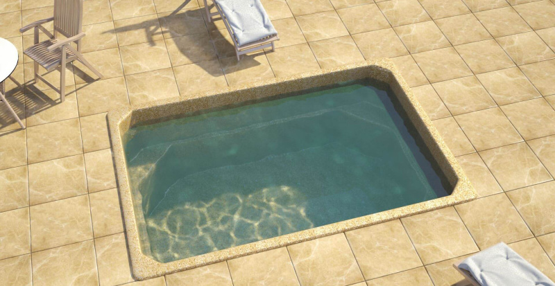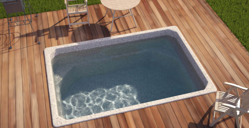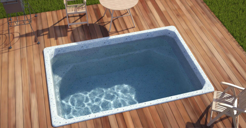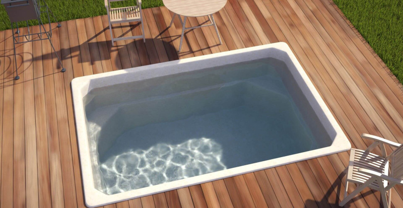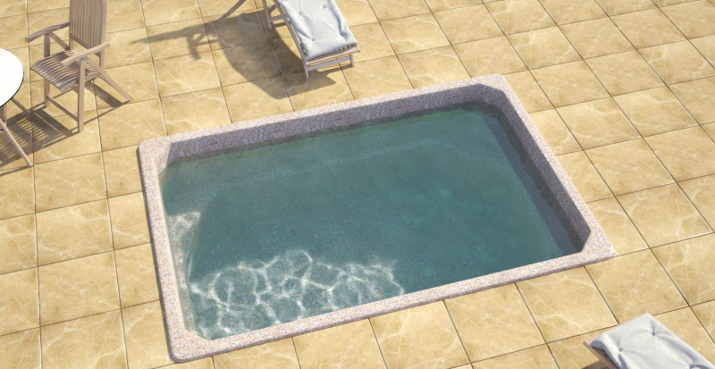 Модель «Комфорт» относится к бассейнам малых размеров. Его отличительной особенностью является прямоугольная форма и постоянная глубина в 1,5 метра. По периметру бассейна предусмотрены сиденья, они расположены в углах чаши. Бассейн Комфорт позиционируется как бюджетная модель, поэтому лишена особых излишков. Это небольшой прямоугольный бассейн который отлично впишется на небольшом участке или в помещении, скажем в бане.