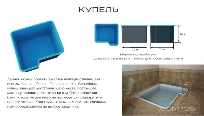 Примечание: разнообразие цветовых гамм, возможность выполнения композитного бассейна с утеплителем.