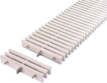 Переливная решетка компании Kripsol (Испания), изготовлена из полипропилена, материал обладает стойкостью к воздействию ультрафиолетовых лучей. Решетка предназначена для применения в переливном бассейне: используется как элемент декоративной отделки и обеспечивает безопасность прохода, защиты переливного лотка от попадания посторонних предметов . Один метр переливной решетки состоит из 45 модулей соединенных между собой. Данное конструктивное соединение позволяет использовать решетку, как на прямых участках, так и на извилистых.