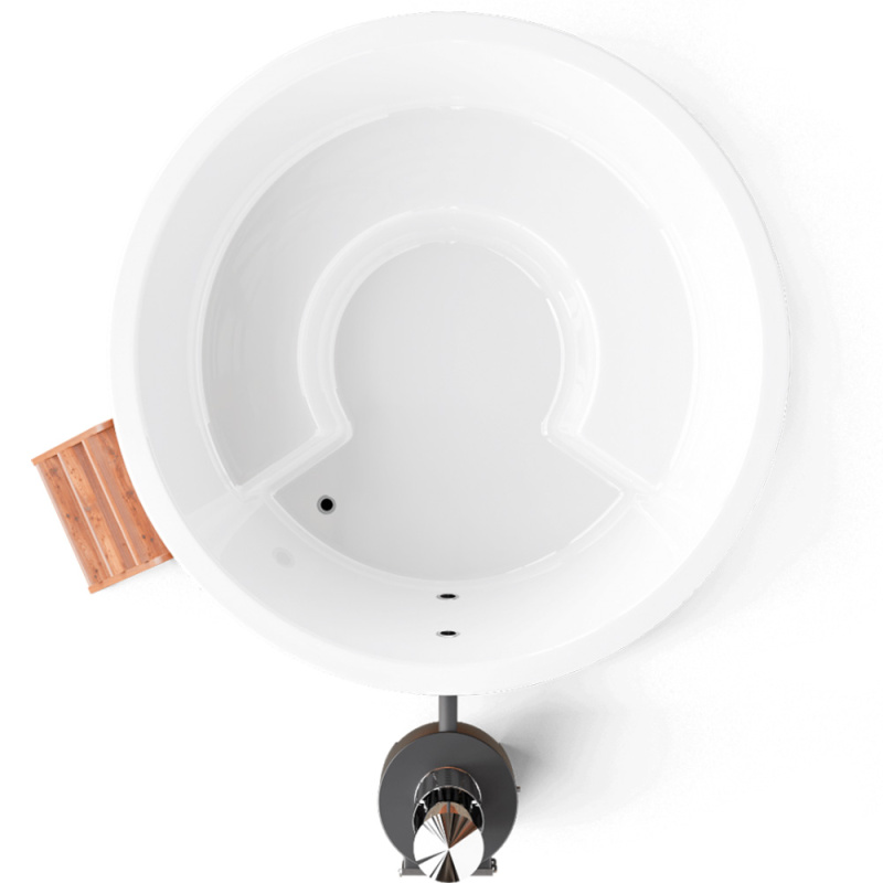 Чаша купели изготавливается из инновационного многослойного композита, с использованием декоративно-защитного высокопрочного материала премиум-класса – гелькоут немецкой компании BUFA. Гелькоут абсолютно безопасен для человека и позволяет добиться глянцевого эффекта. Покрытие купели гладкое, приятное на ощупь, ослепительно белого цвета – вода в такой купели всегда кристально чистая. При желании купель можно превратить в полноценный спа-бассейн, оборудовав ее системами аэромассажа и хромотерапии.