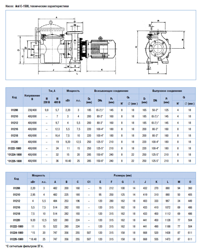Насос с префильтром Aral C 1500, 11 кВт, 380 В