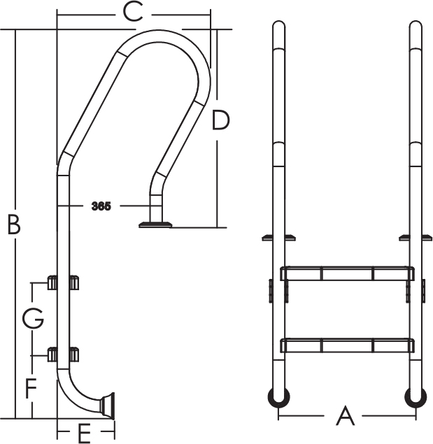 Лестница NSF315-SR, AISI 304, 3 ступ.