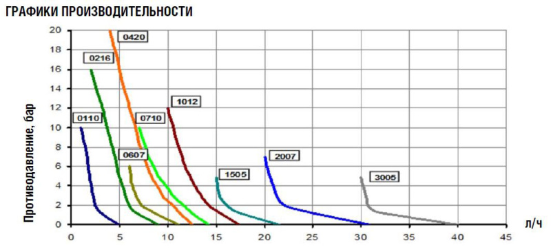PLUS 2007 20 - 28,2 л/ч, при противодавлении 7 - 0,5 bar