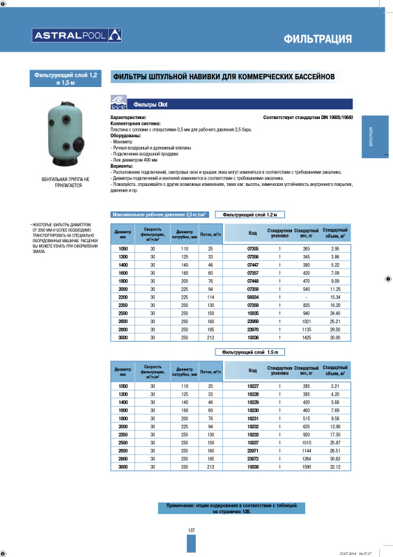 Предназначен для очистки воды от механических загрязнений. Фильтрующим материалом является кварцевый песок. Оснащен манометром, ручными воздушным и дренажным клапанами. Возможно подключение воздушной продувки. Люк диаметром 400 мм. Диаметр фильтра 1400 мм, производительность 46 м3/ч. Площадь фильтрации 1,54 м2. Материал изготовления Стекловолокно (Шпульная навивка). Внимание! Вентильная группа не прилагается, приобретается отдельно.