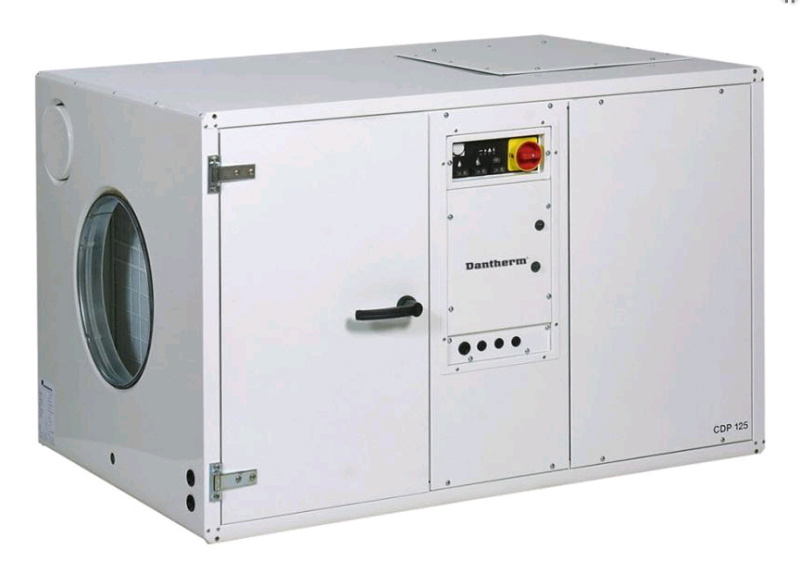 Стационарный осушитель воздуха для плавательных бассейнов и монтажа в отдельном помещении. Электронное управление, вертикльный или горизонтальный подмес свежего воздуха, входной воздушный фильтр, 2 варианта расположения инспекционной дверцы. Осушитель воздуха Dantherm CDP 125 работает в соответствии с принципом конденсации. Вентилятор направляет влажный воздух в осушитель и выводит влагу через испаритель, где пар охлаждается и превращается в воду. Полученный конденсат поступает в специальный поддон и выводится из оборудования. Сухой холодный воздух при прохождении через конденсатор подвергается нагреву (под действием тепловой энергии, полученной из воздуха при испарении влаги, и работы компрессора). В результате, в помещение подается теплый сухой воздух с температурой на 5 °C выше значения на входе. Эффективное осушение достигается за счет многократной рециркуляции воздуха через осушитель. Это приводит к постепенному снижению абсолютной и относительной влажности в помещении.