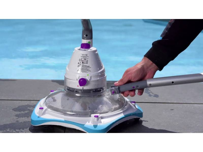 Ручной пылесос компании Kokido Telsa 80. Отличное решение для домашних наземных и заглубленных бассейнов, включая крупные водоемы. Работает от собственной встроенной аккумуляторной батареи. Не требует подключения к сети и системе фильтрации бассейна. Не нуждается в проводах или шлангах. Полностью автономен. Имеет широкое основание с щетками для очистки большой площади дна.