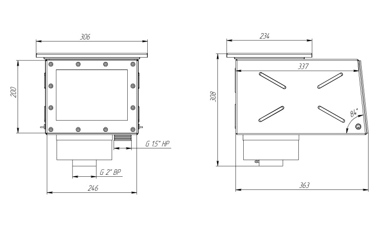 Монтируется в стену. Присоединение к фильтру - внутренняя резьба 2’’, к аварийному переливу - наружная резьба 1,5".