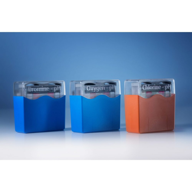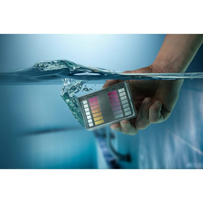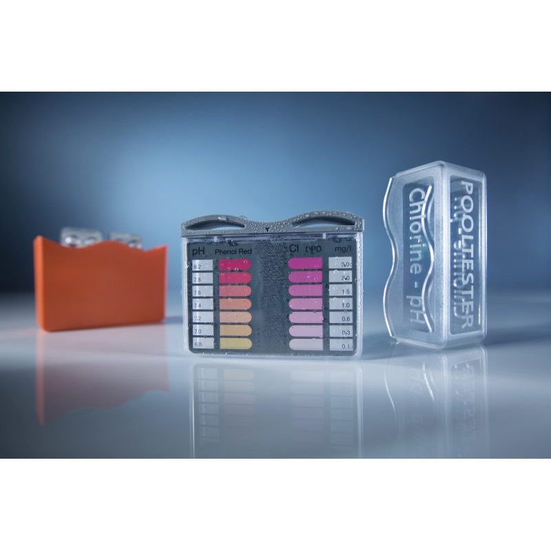 Pooltester позволяет одновременно определять самые популярные средства для обработки воды и значение рН.